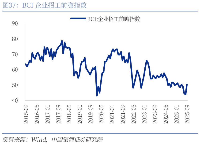 坐褥的强盛提高外来用工需求。分户籍来看9月城镇户籍休闲率和外来户籍休闲率均有所下落。咱们合计最主要的成分便是握续的“抢出口”和“抢两新”较大幅度的拉动了工业坐褥水平,因此让事业用工需求保握较高韧性。BCI企业招工前瞻指数9月上升至50.49%,较前值加多6.42pct。不外不论是城镇访谒休闲率如故土产货户籍休闲率,均高于昨年同期以及历史均值水平,现在做事市集仍濒临较大压力。