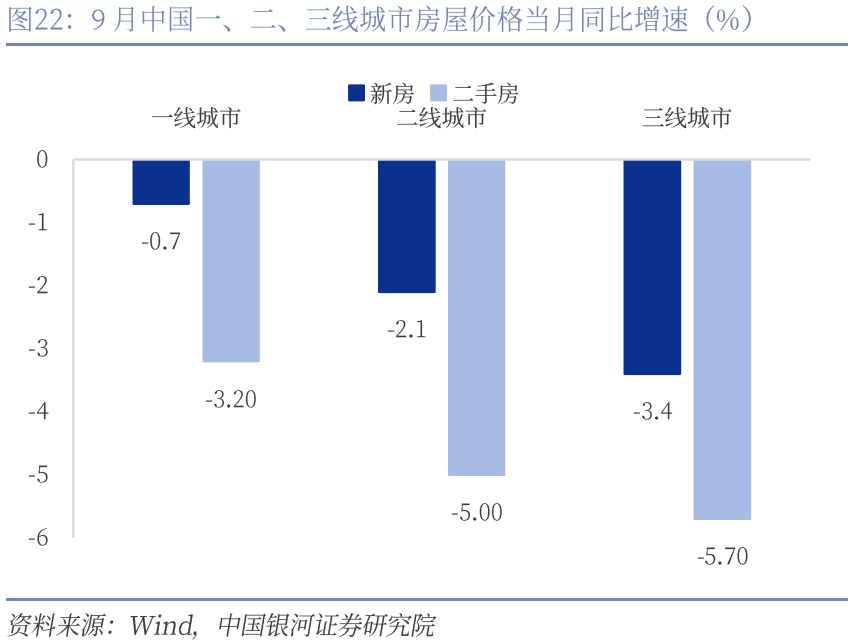 价钱端,新址价钱跌幅握续收窄,但一线二手房价钱负增再度扩大。9月70大中城市一、二、三线新址价钱握续收窄,本月分离为-0.7%、-2.1%和-3.4%(前值-0.9%、-2.4%和-3.7%),趋势渐渐回升中。不外二手房和新址价钱的分化仍然昭彰,一方面或标明本体需求仍不清静;另一方面,一线城市购房者对屋子的要求也愈加尖刻,对“好屋子”的需求连接提高。
