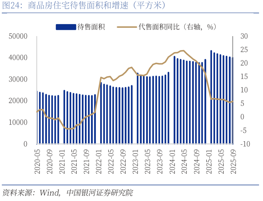 商品房销售络续以价换量。销售端,9月商品房销售面积降幅扩大,1—9月份,寰球新建商品房销售面积65835万平方米,同比下落5.5%(前值-4.7%);新建商品房销售额63040亿元,下落7.9%(前值-7.3%)。销售额降幅快于销售面积暗意现在地产市集仍在以价换量。库存方面,商品房住宅库存本月录得39937万平米,环比下落292万平米,聚积7个月保握去库,但已驱动边缘放缓,待售面积增速再度上升至5.8%(前值5.4%)。需求端仍然有待提振。