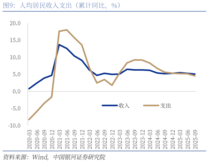 奢侈支拨延长逾期于收入增长,奢侈内无邪能尚不牢固。本年三季度,东说念主均住户收入和支拨累计增速分离为5.1%、4.6%,较昨年同期分离降0.1、1.1个百分点,年内支拨增速显赫逾期于收入增长,住户奢侈倾向未能延续开发趋势,较昨年三季度有所下落,这标明形态收入的增长向奢侈支拨的滚动受到制约。制约一方面来自于做事与收入信心尚未获取压根改善,另一方面或与奢侈物价水平握续低位,压低了形态支拨增速谋划。总体来看,刻下住户收入虽保握温煦增长,但奢侈支拨的延长较为逾期,住户奢侈倾向的回落反应出信心开发不充分和奢侈能源不及,促进更具握续性、更闲居的奢侈动能开释,仍需疼爱对低收入群体、后生群体及改善型奢侈场景的支握和勾引。
